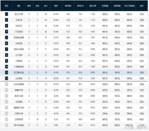 至此,广州男篮斩获到3连胜,总成绩提升为6胜4负积16分,少赛1场也挤进季后赛区域。新疆男篮综合战绩不太理想,最新战绩为4胜7负积15分,排在季后赛区域之外。